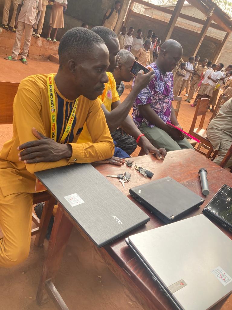 Bis es soweit war, dass die Laptops in Klologo ausgepackt werden konnten – der Honorable Chef du Village, der Vorsitzende unseres Partner-Vereins, die Leiterin unseres Mädchenprojektes sowie Lehrer und Schulkinder waren anwesend – musste Kathrin Wich, die Schriftführerin von Kekeli Togo e.V., eine Menge Daten eingeben und Fragen beantworten, damit Kekeli Togo als Empfänger von Laptop-Spenden anerkannt wurde registriert war. Sehr hilfsbereit war Raphael Seebröker, ein Ehrenamtlicher von Labdoo, der von sich aus unserem Verein unter die Arme griff, nachdem ein erster Versuch, uns zu registrieren, gescheitert war, und Kathrin Wich sich der Sache angenommen hatte.