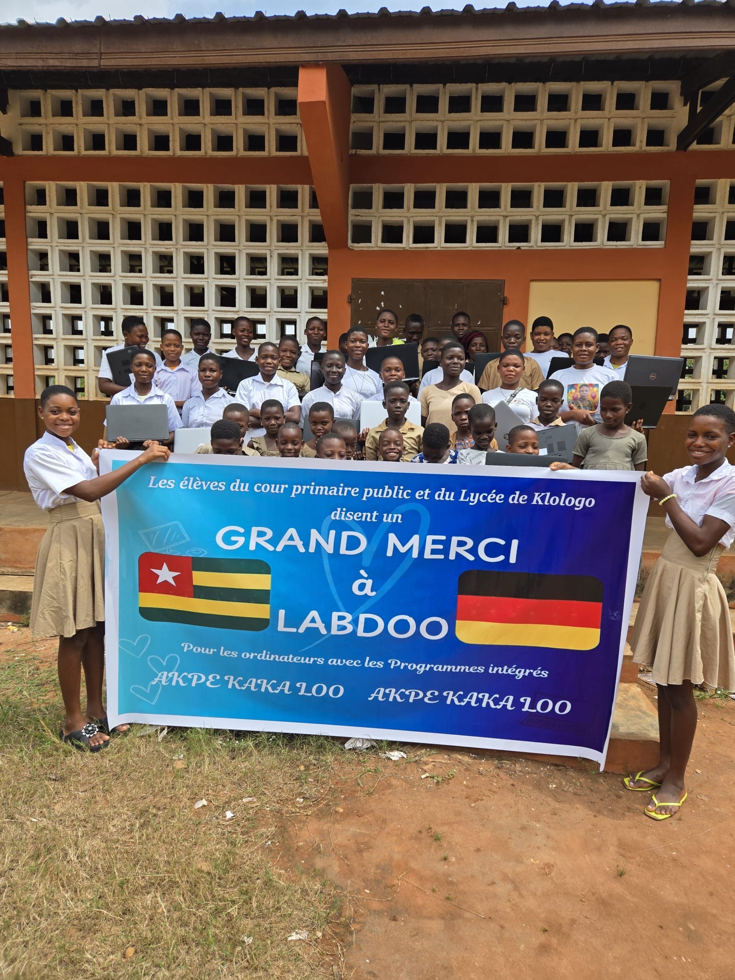 Anschließend ging es nach Klologo, wo wir 25 gespendete Laptops von Labdoo an die Schülerinnen und Schüler der Grundschule und des Gymnasiums übergeben durften. Die Freude in den Augen der Kinder war unbeschreiblich! Die Laptops werden ihnen neue Türen öffnen und den Zugang zu Bildung und digitalen Fähigkeiten erleichtern, was in der heutigen Zeit unerlässlich ist. Ein riesengroßes Dankeschön an Labdoo für diese großzügige Spende, die einen enormen Unterschied im Leben dieser jungen Menschen machen wird.